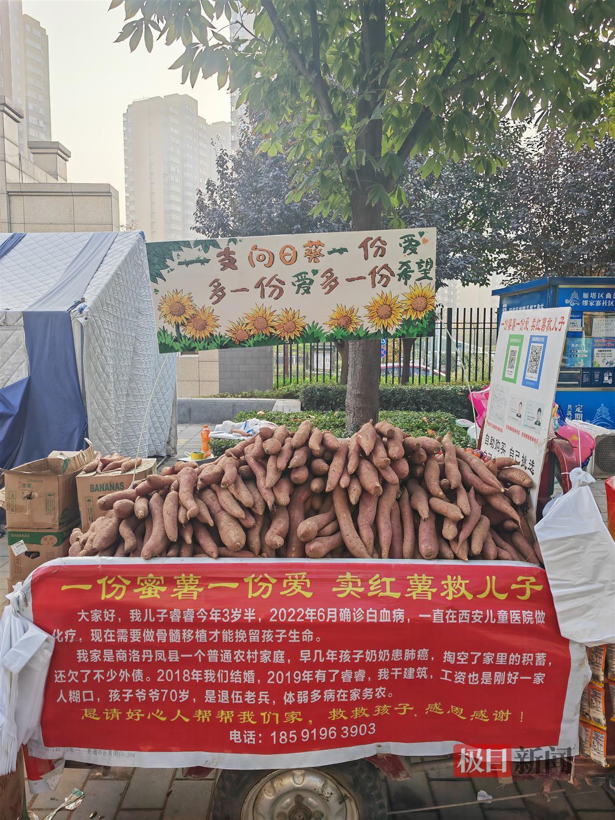 "A sweet potato and a love, to raise life-saving money for children." "Buy it yourself, choose it yourself, scan the code yourself, thank you." On the afternoon of November 1st, in the east gate of Miaojiazhai Community in Qujiang New District, Xi ‘an, a journalist saw the self-service sweet potato stall in Liu Peng. A motorcycle tricycle was lined with neat sweet potatoes, and a sign stood on one side. In the middle of the sign were the ID photos of Liu Peng and his wife Wei Qiaoling, and the diagnosis certificate of their child Rui Rui.