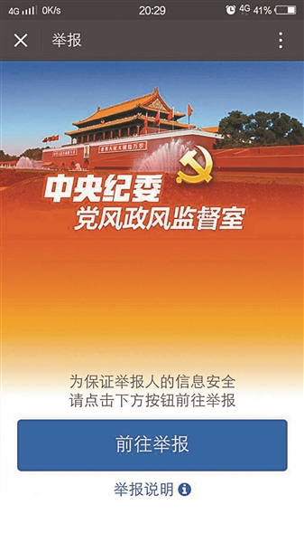 Some government offices have a reporting function. For example, at the beginning of this year, WeChat WeChat official account, the website of the Supervision Department of the Central Commission for Discipline Inspection, entered the public eye. Click on the button of "four winds Report" in its sub-column to enter the interface of "Supervision Office of the Party Style and Political Style of the Central Commission for Discipline Inspection" and realize "one-click" report. There is also a "WeChat Hall" in the lower right corner of the page. Click it to enter an interface that summarizes the public numbers of nearly 20 provincial disciplinary committees, and the dynamics of "tiger hunting" in many provinces can be paid attention to in real time.